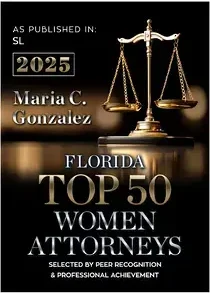 - Recognized in 2025 as Top 50 Women Lawyers Super Lawyers by Florida Magazine’s “Super Lawyers”.